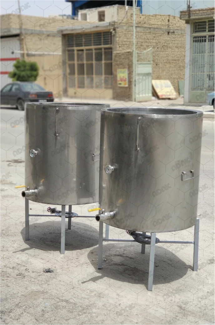 منبع دوجداره رسگیر عسل از تجهیزات اصلی و مهم زنبورداری می باشد که جهت شفاف سازی و خوش رنگ شدن عسل و بسته بندی آن استفاده می شود.